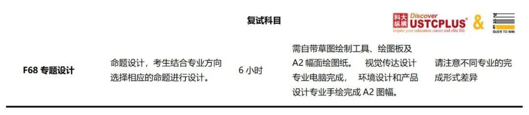 复试科目为F68专题设计,是长达6小时的深度命题设计 。需要特别注意:不同研究方向的具体完成形式不同。视觉传达设计方向需使用电脑完成。环境设计和产品设计方向需手绘完成A2图幅 。这要求在备考时,必须针对你所报考的方向进行极具针对性的练习。视觉传达方向要熟练操作相关设计软件,而环境和产品方向则要继续强化手绘表达和方案深化能力。