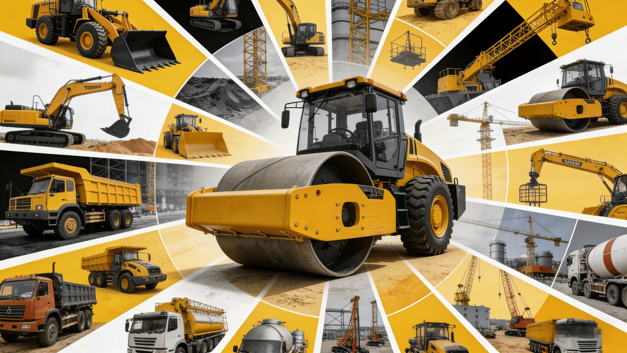 挖掘机械、铲土运输机械、筑养路机械、压实机械、桩工及地下工程机械、轨道交通设备、工程起重机械、工业车辆、凿岩机械、桥梁机械、高空作业、其它专用工程机械等。