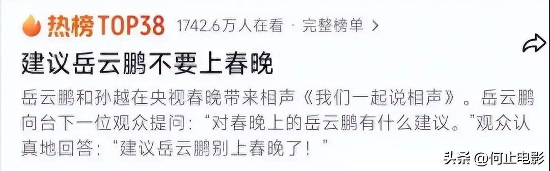 去年春晚结束后,“建议岳云鹏别上春晚了”这一词条迅速登顶热搜,他被接连讨论了好几个月。